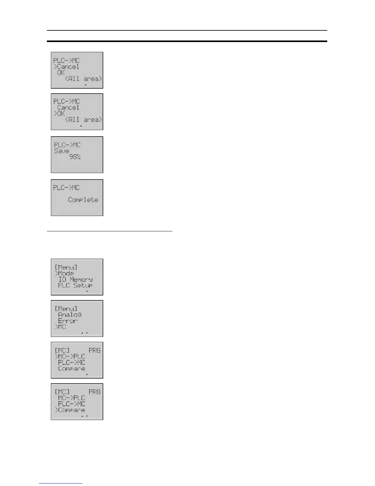 6. Press the OK button to enter the "PLC->MC" Operation Screen.
