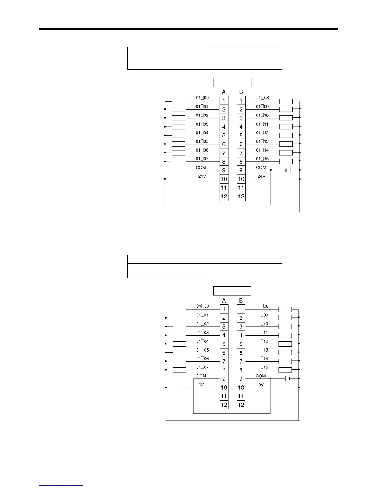 Note Wire COM terminals (A9 and B9) and 0-V terminals (A10 and B10) even