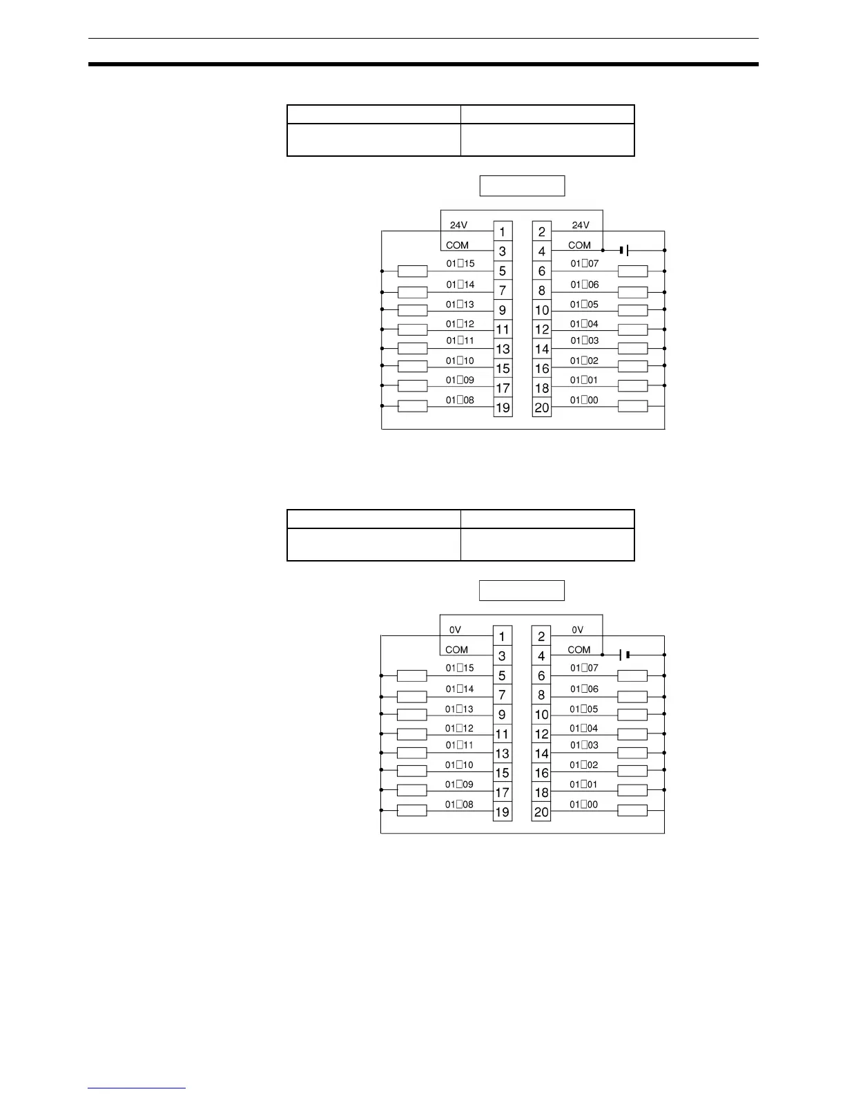 Note Wire COM terminals (3 and 4) and 0-V terminals (1 and 2) even though they