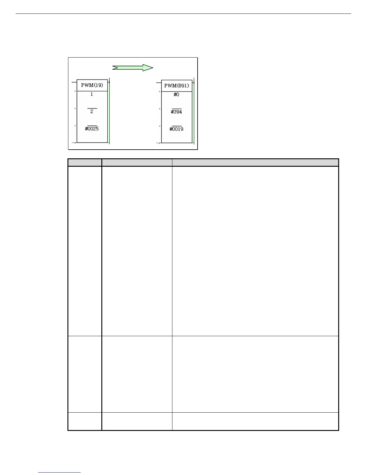 #0001=PWM output 1(Frequency unit of 0.1Hz, Duty factor unit of