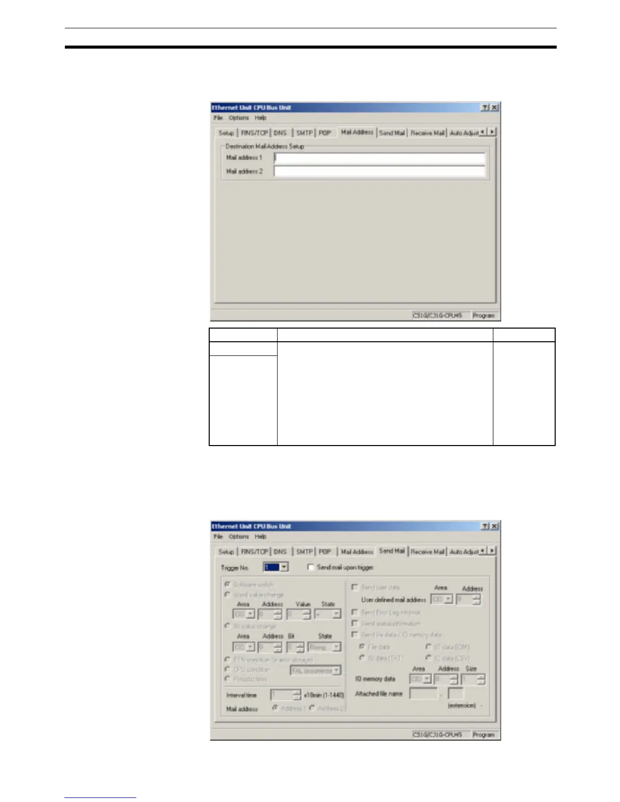 Mail address 1 Set one of the addresses to which the Ethernet Unit