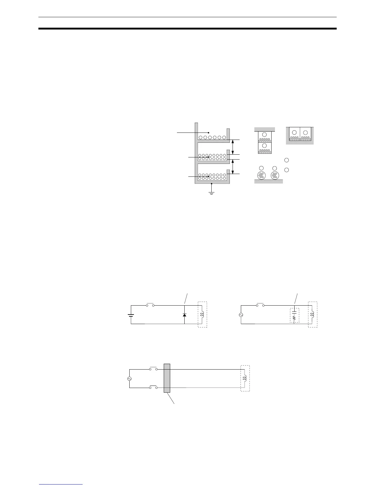 • To prevent inductive noise, separate the communications lines, PLC