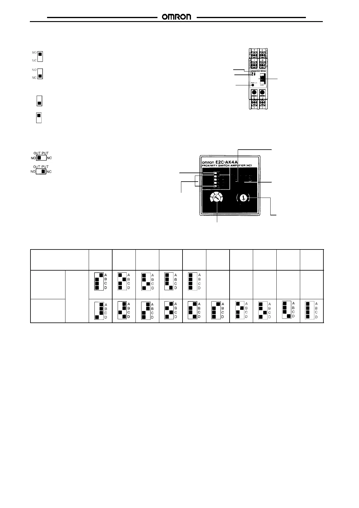 2. Set all the pins of the switch to the left if the E2C-CR5B is used in combination with the E2C-AM4A or E2C-AK4A.