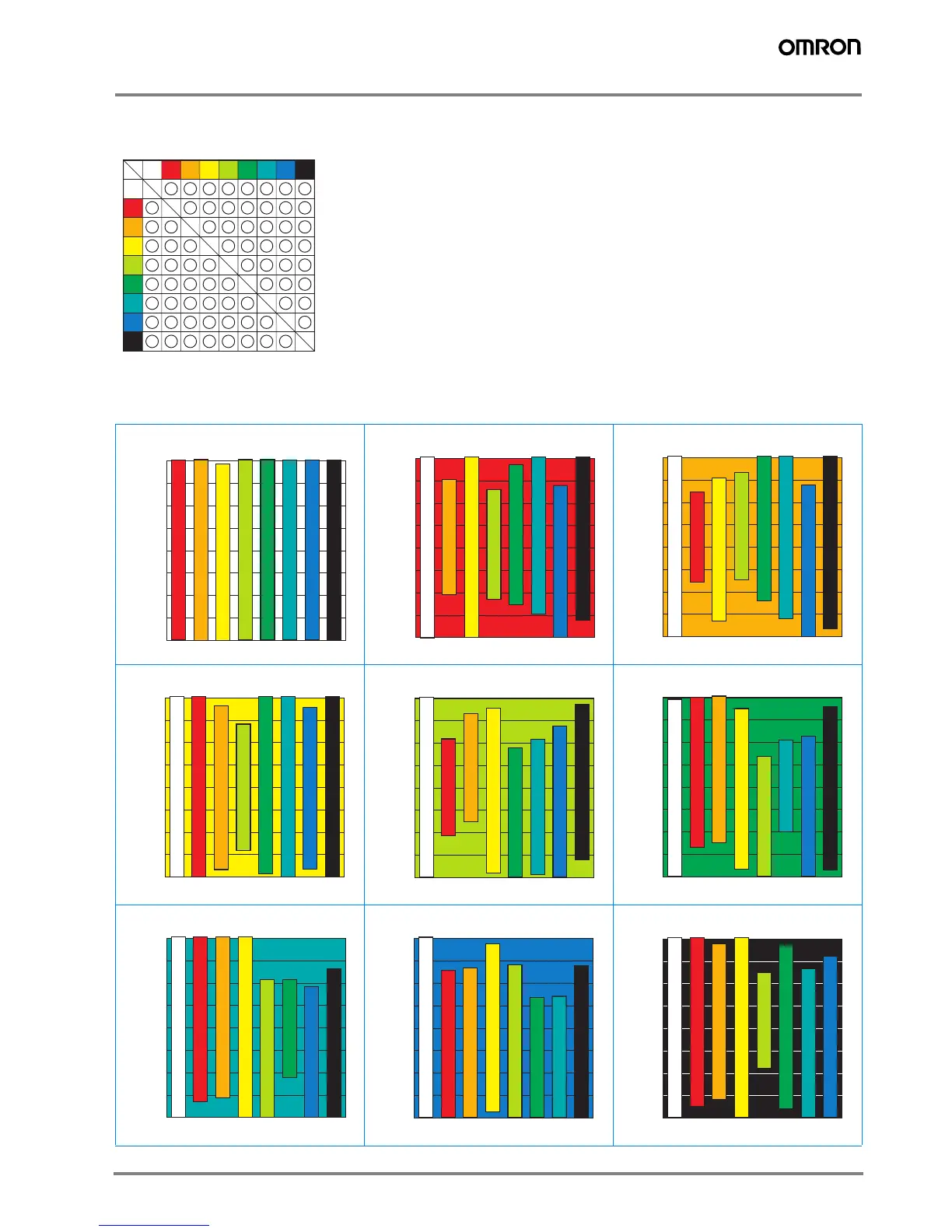 Note: The above chart shows the combinations of colors for which teaching is possible at a sensing distance of 12 mm.