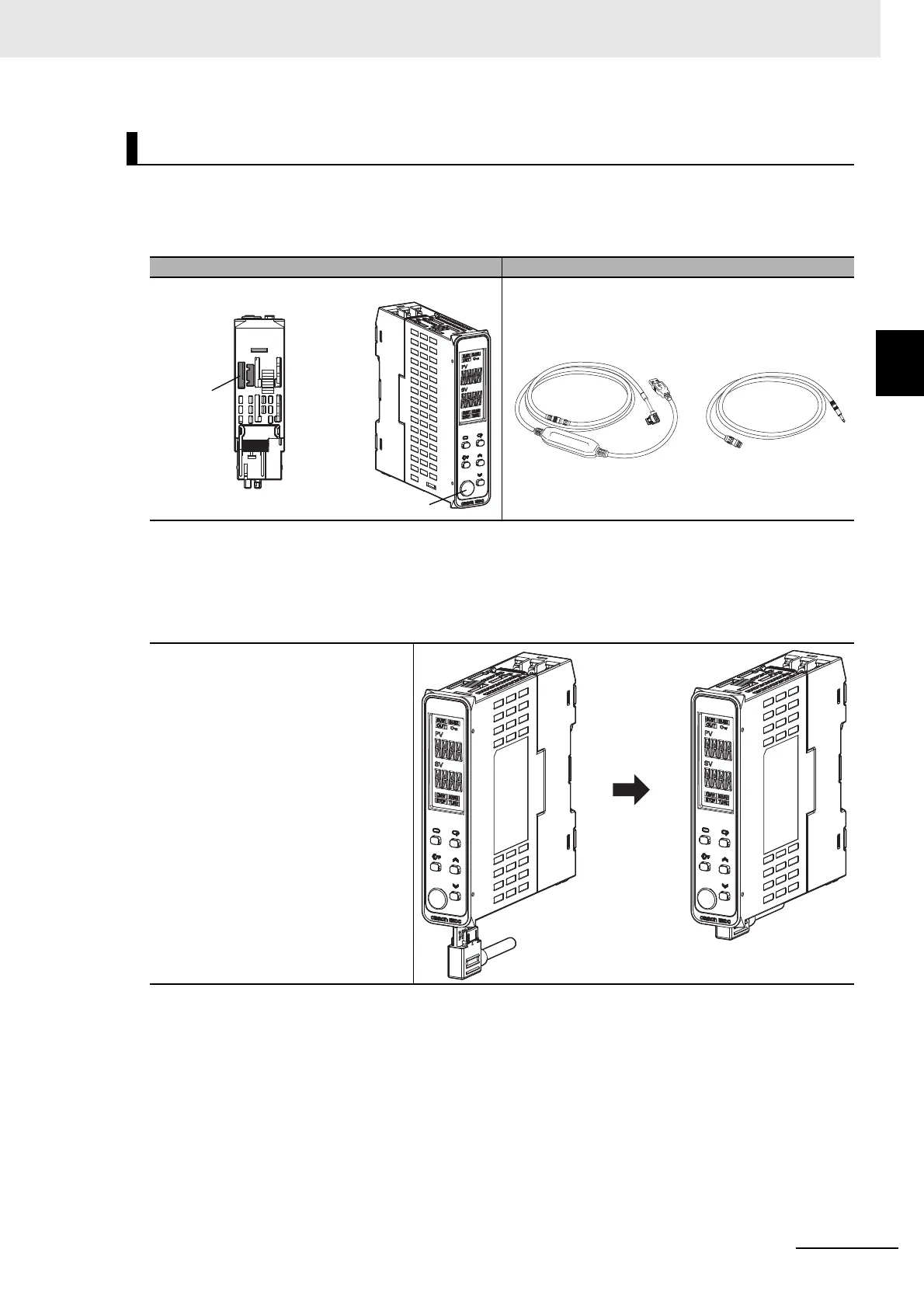 The locations of the Setup Tool ports on the E5DC or E5DC-B and the required cables are shown below.