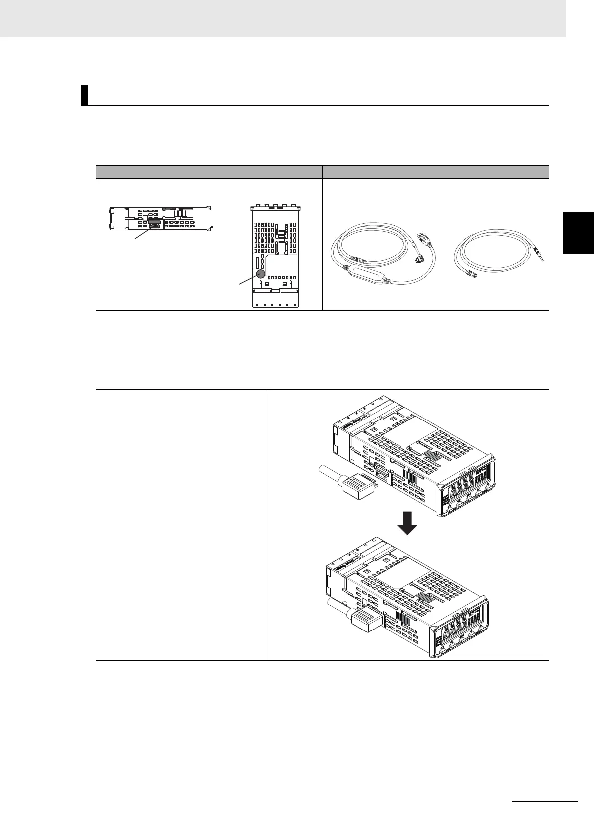 The locations of the Setup Tool ports on the E5GC and the required cables are shown below.