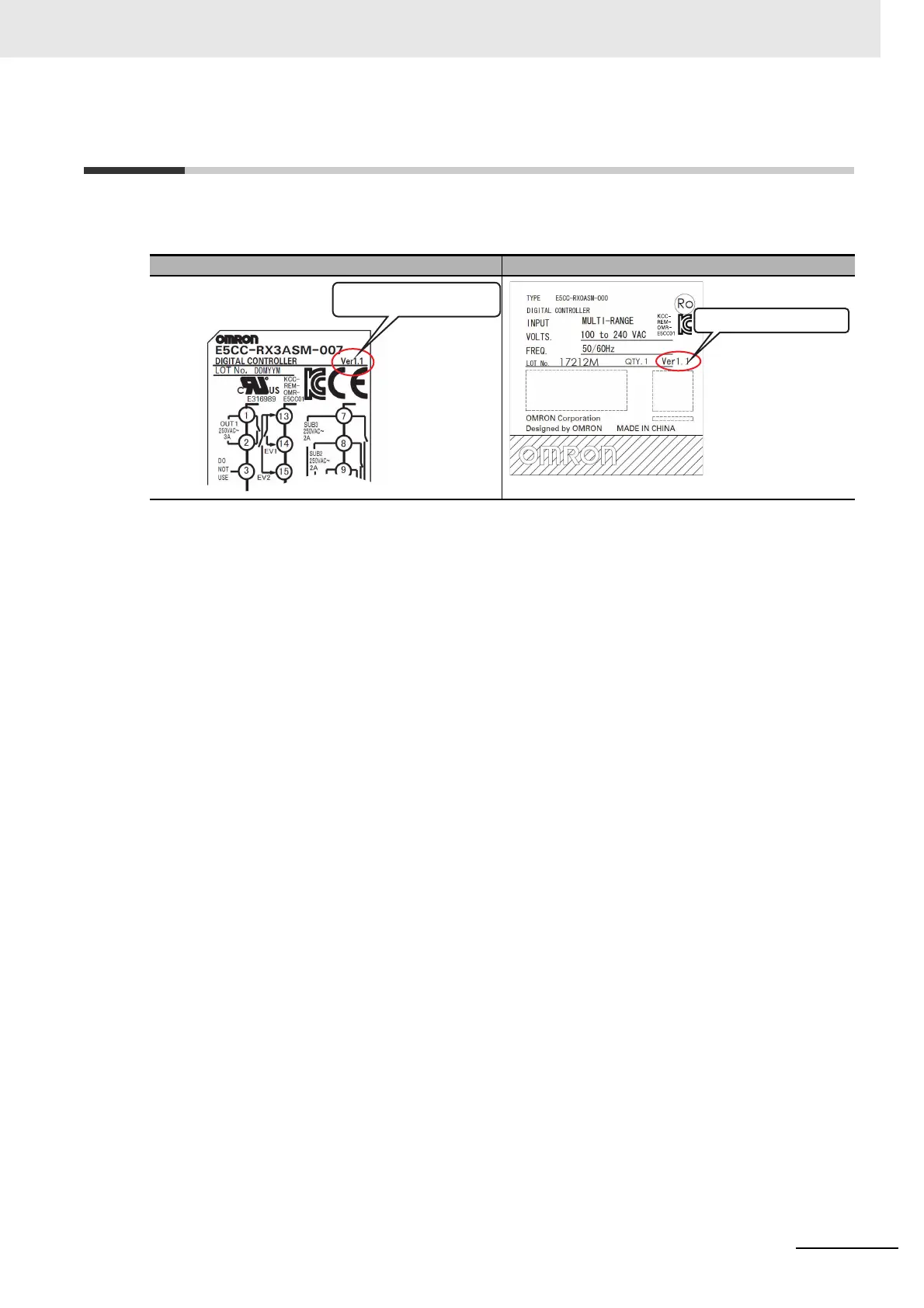 Check the version on the nameplate on the E5@C Digital Controller or on the label on the packing box.