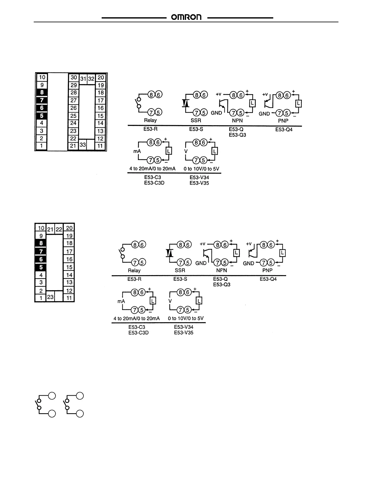 When replacing the Output Module, use the E53-R. The following diagrams show the relationship between terminals and open/close relay