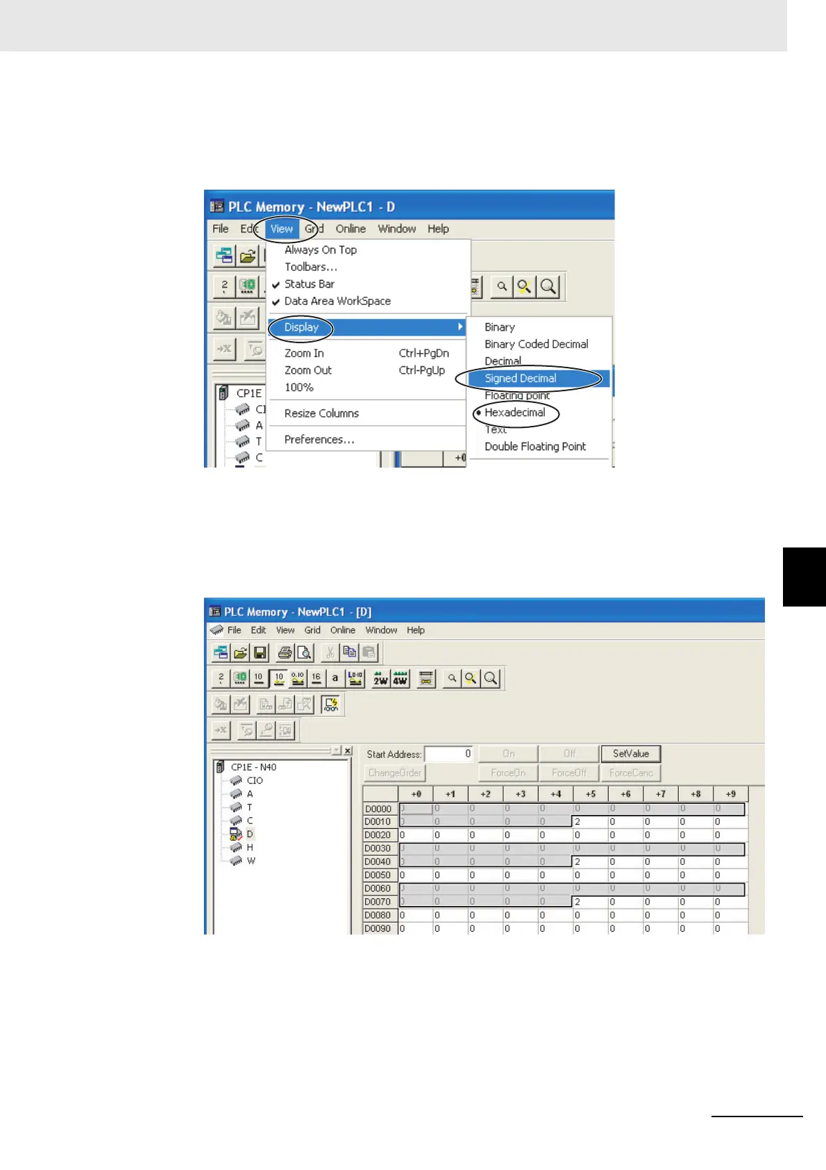 (4) We will change the values that are displayed for PLC memory to signed decimal