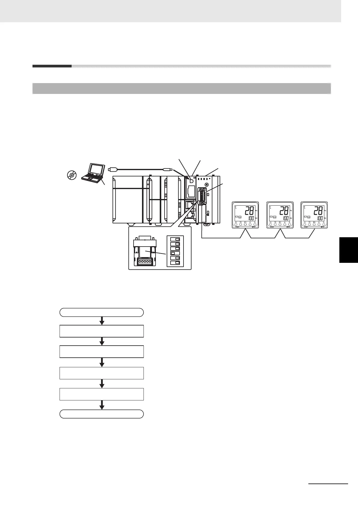 • D0000 to D0089 are used in the PLC memory. The default E5CC parameter allocations are used.