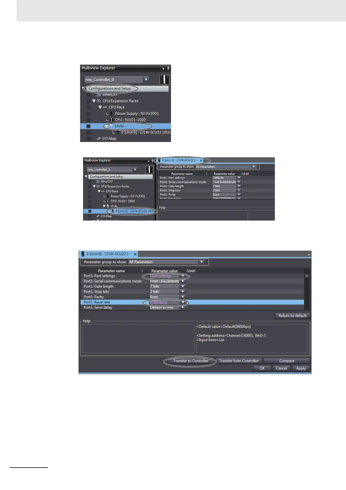 (3) Double-click CJ1W-SCU22. The CJ1W-SCU22 Setting Tab Page will be displayed.