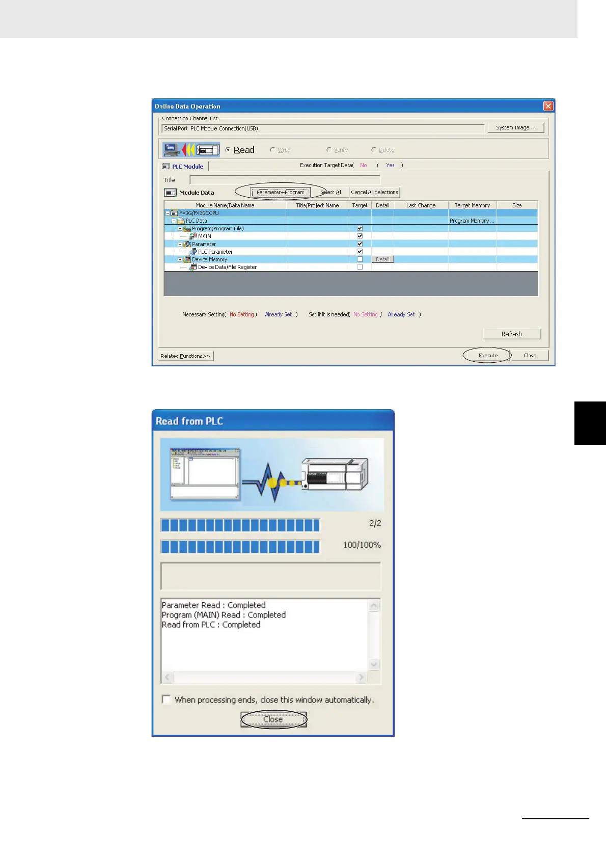 (6) Click the Parameter + Program Button and then click the Execute Button.