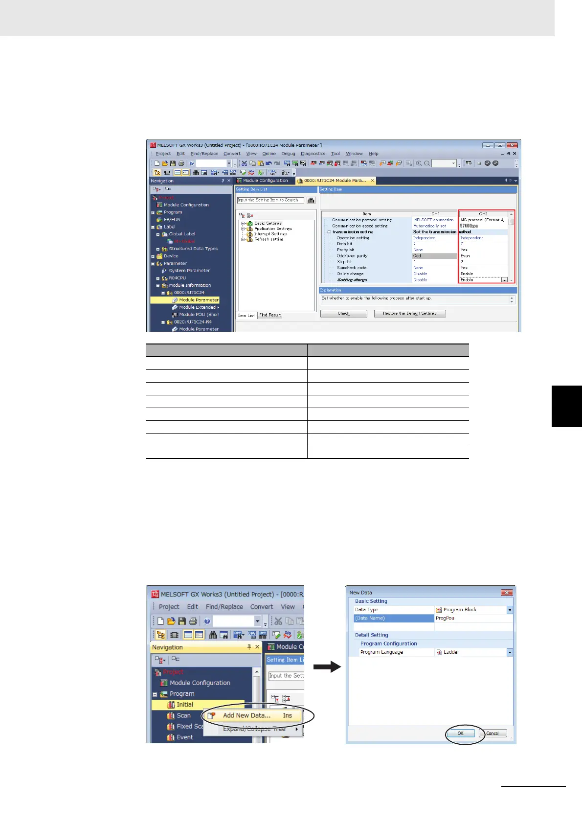 In the following example, channel 2 (RS-422/485) is set for the RJ71C24 Module.