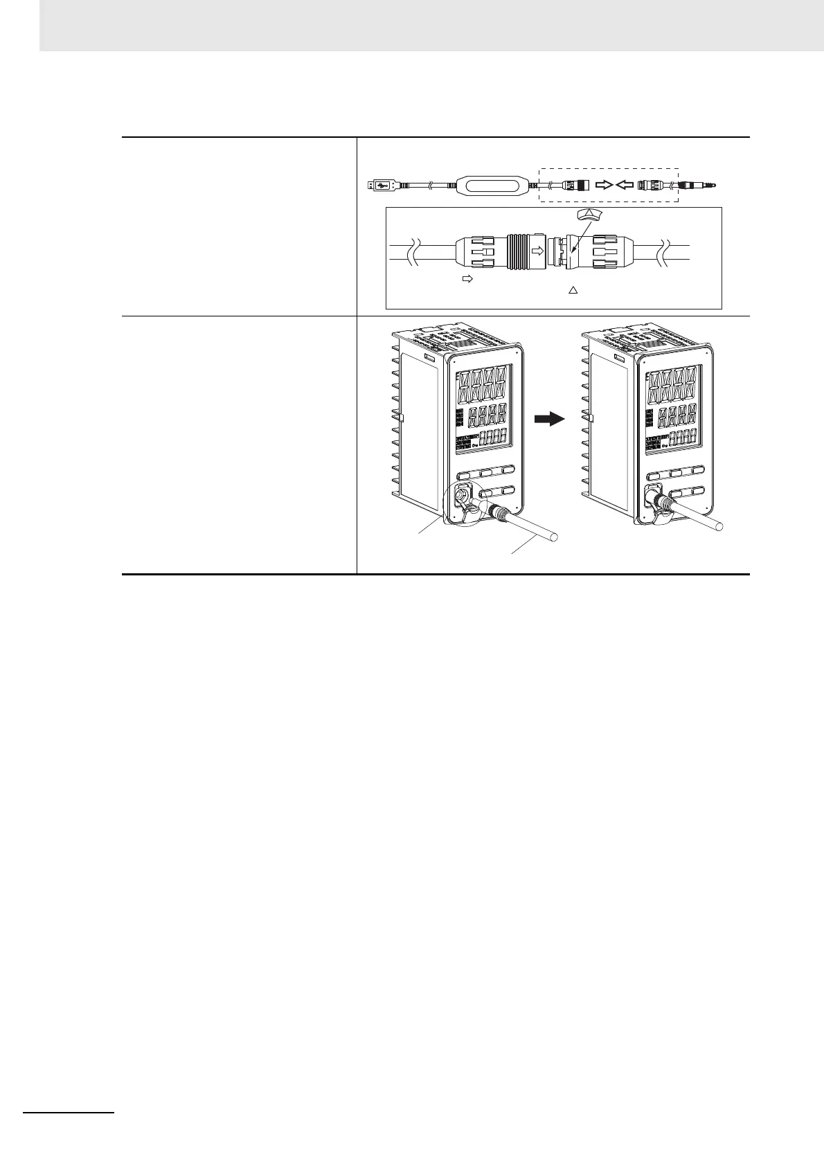 Align the arrow ( ) on the small connector on the E58-CIFQ2 USB-Serial