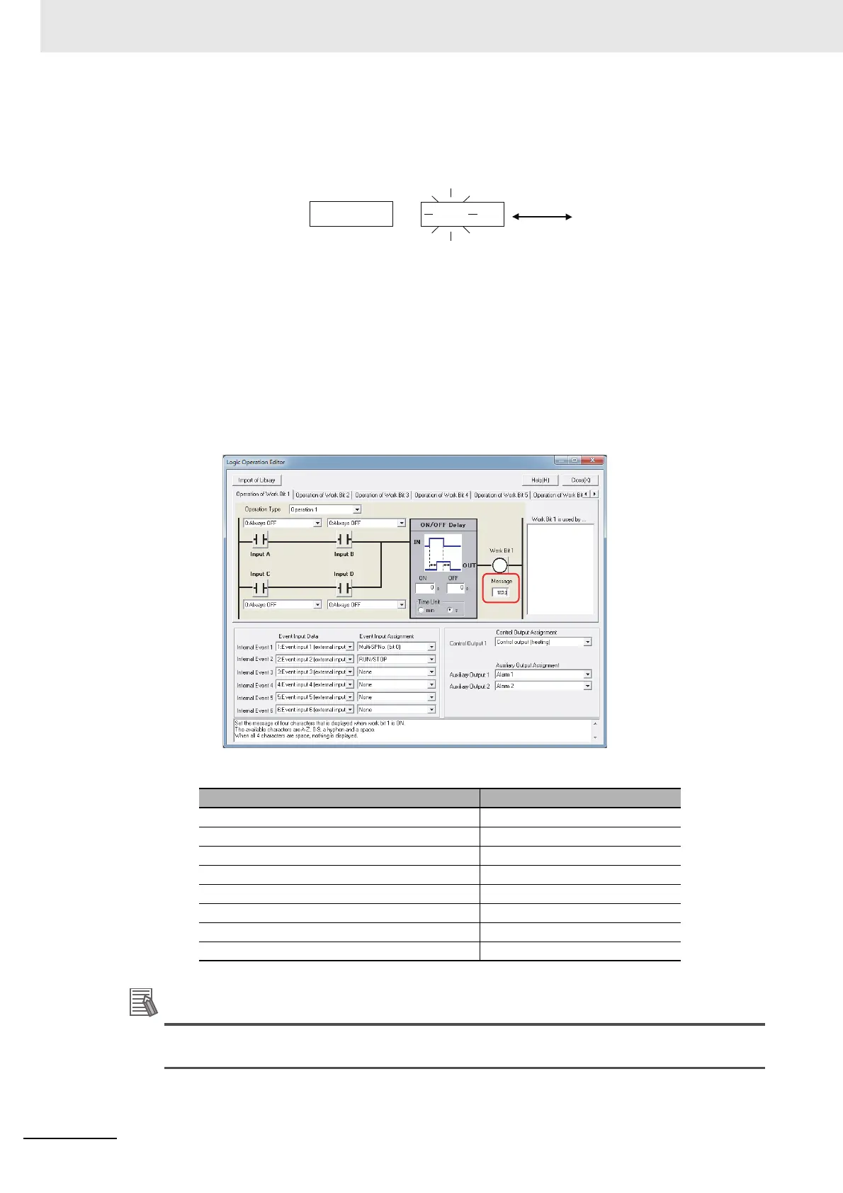 On the Logic Operator Editor, enter the message in the input field for the work bit as