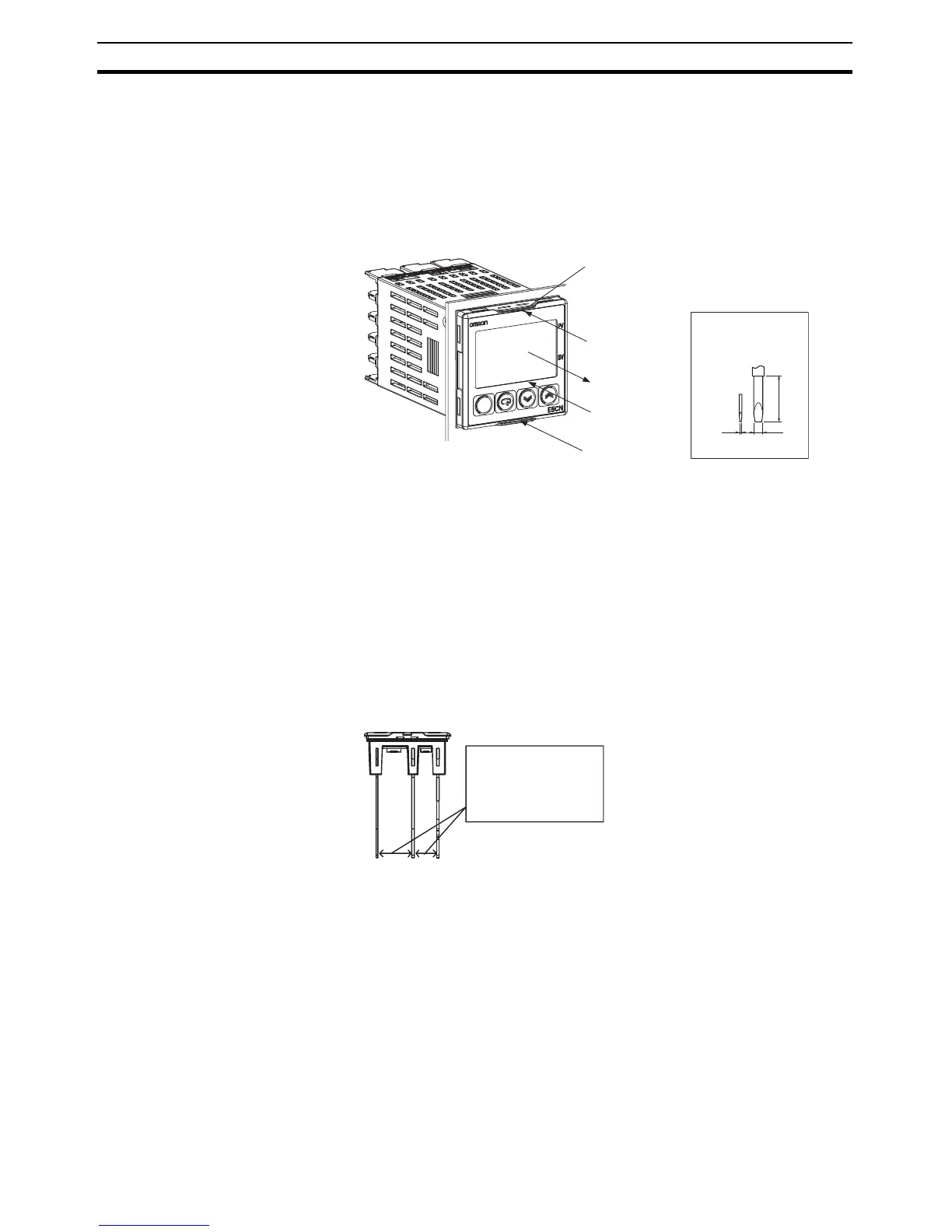 pushing the E5CN into place, push down on the hooks on the top and bot-