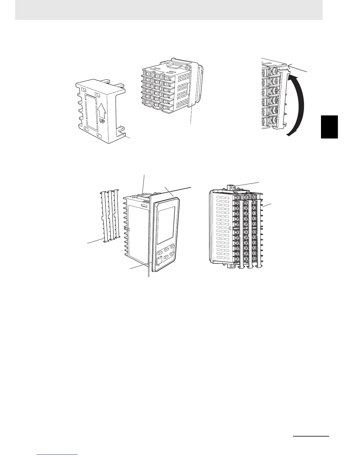 (2) Insert the E5EC/E5AC into the mounting hole in the panel.