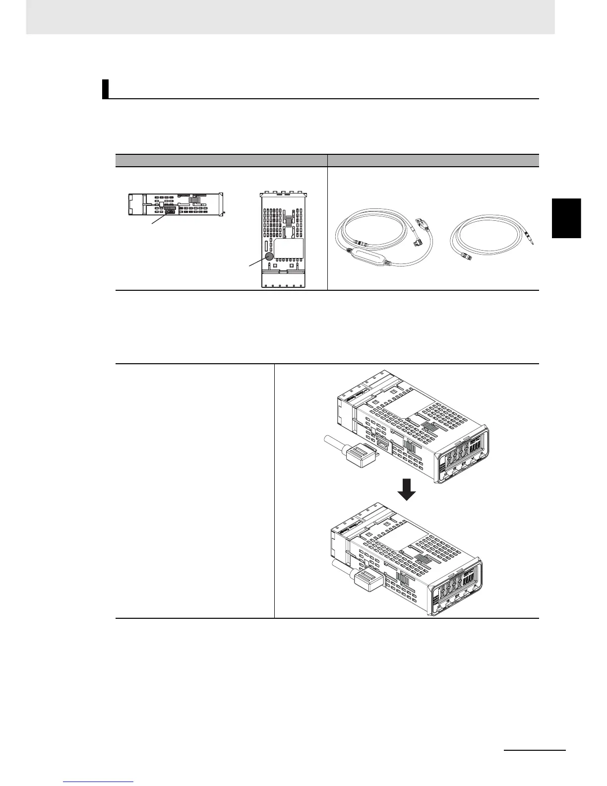 The locations of the Setup Tool ports on the E5GC and the required cables are shown below.