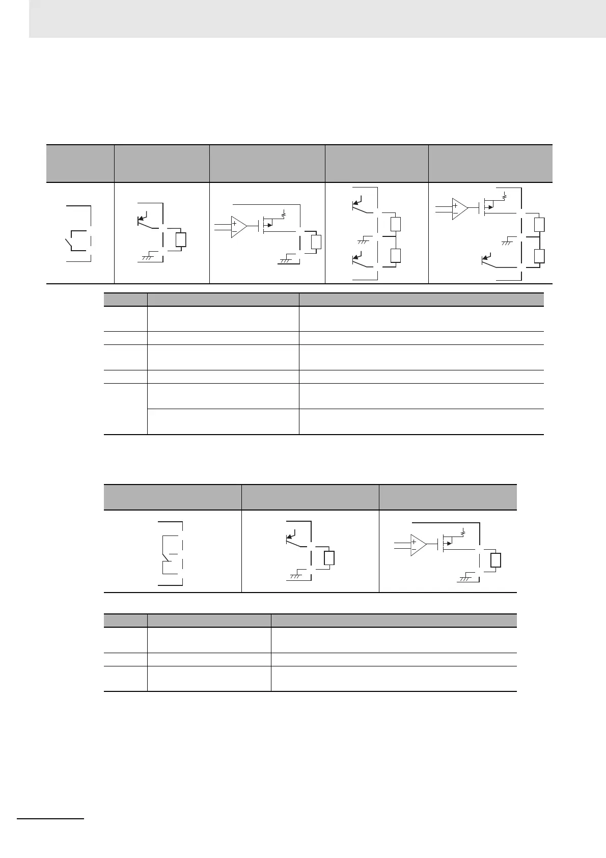 The following diagrams show the applicable outputs and their internal equivalent circuits.