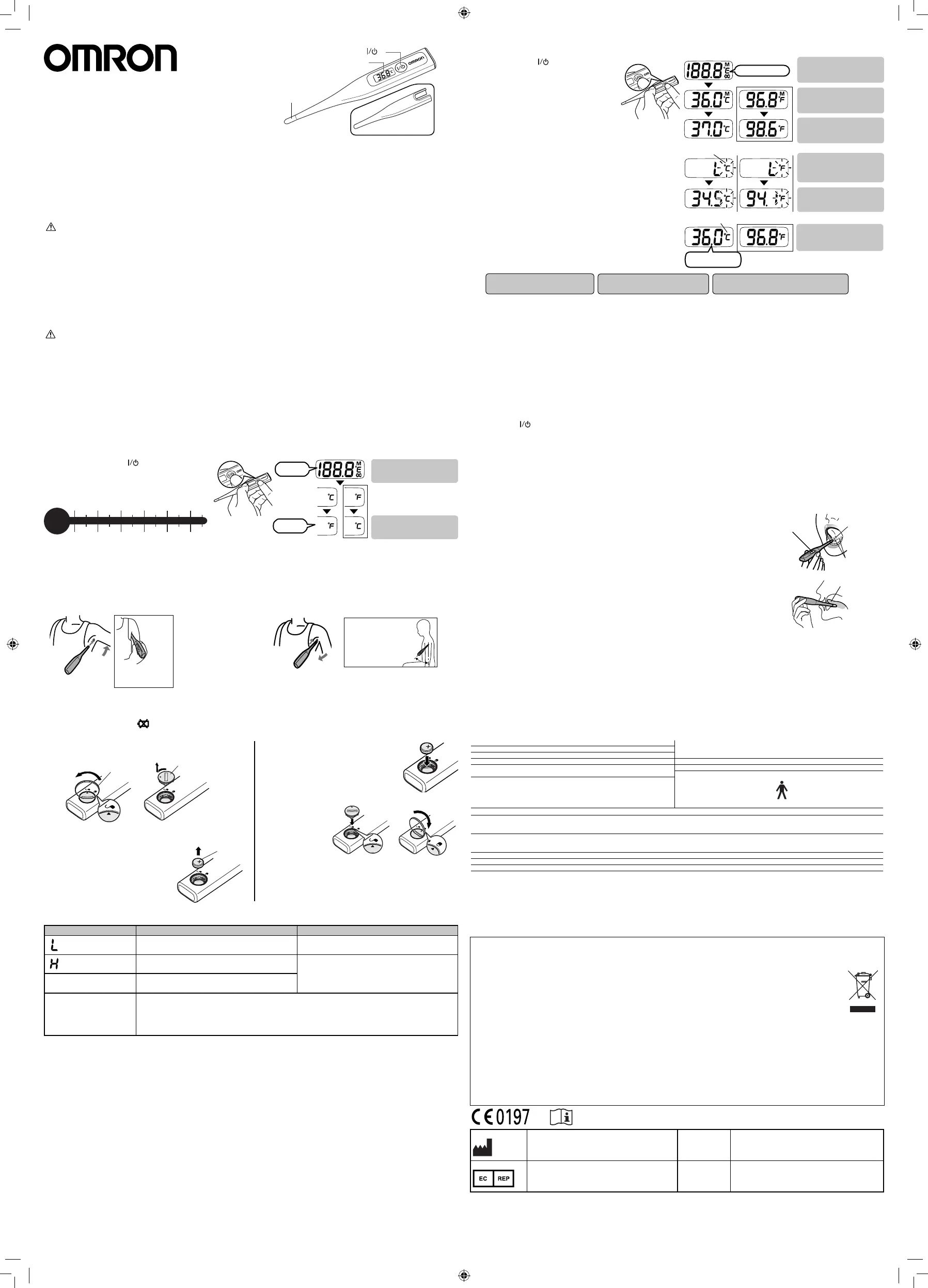 • Используйте термометр только для измерения температуры тела человека.