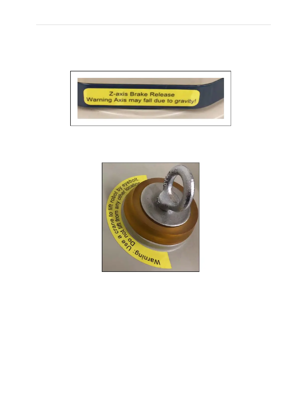 This label is partially around the eyebolt, marking that as a point to lift from.