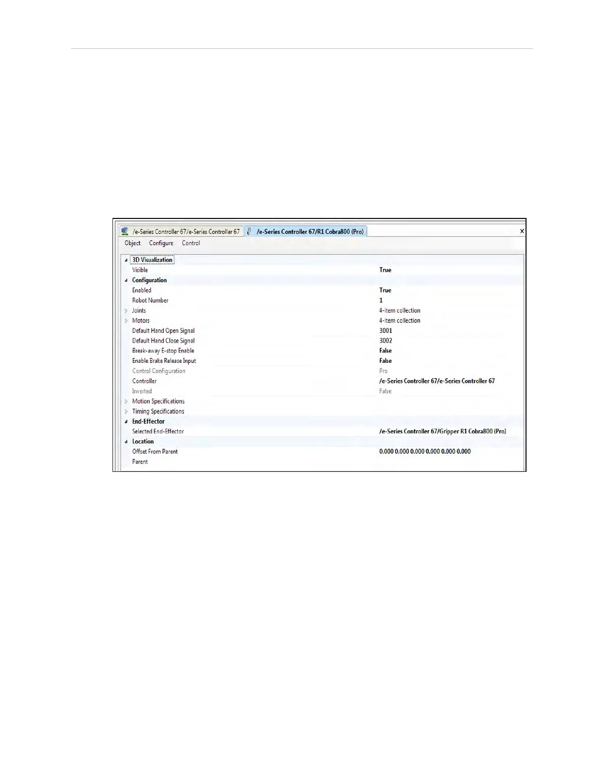 Figure 7-17. Robot Editor, with Joints Collapsed. Note that Joint 1 of the robot is Element 0.
