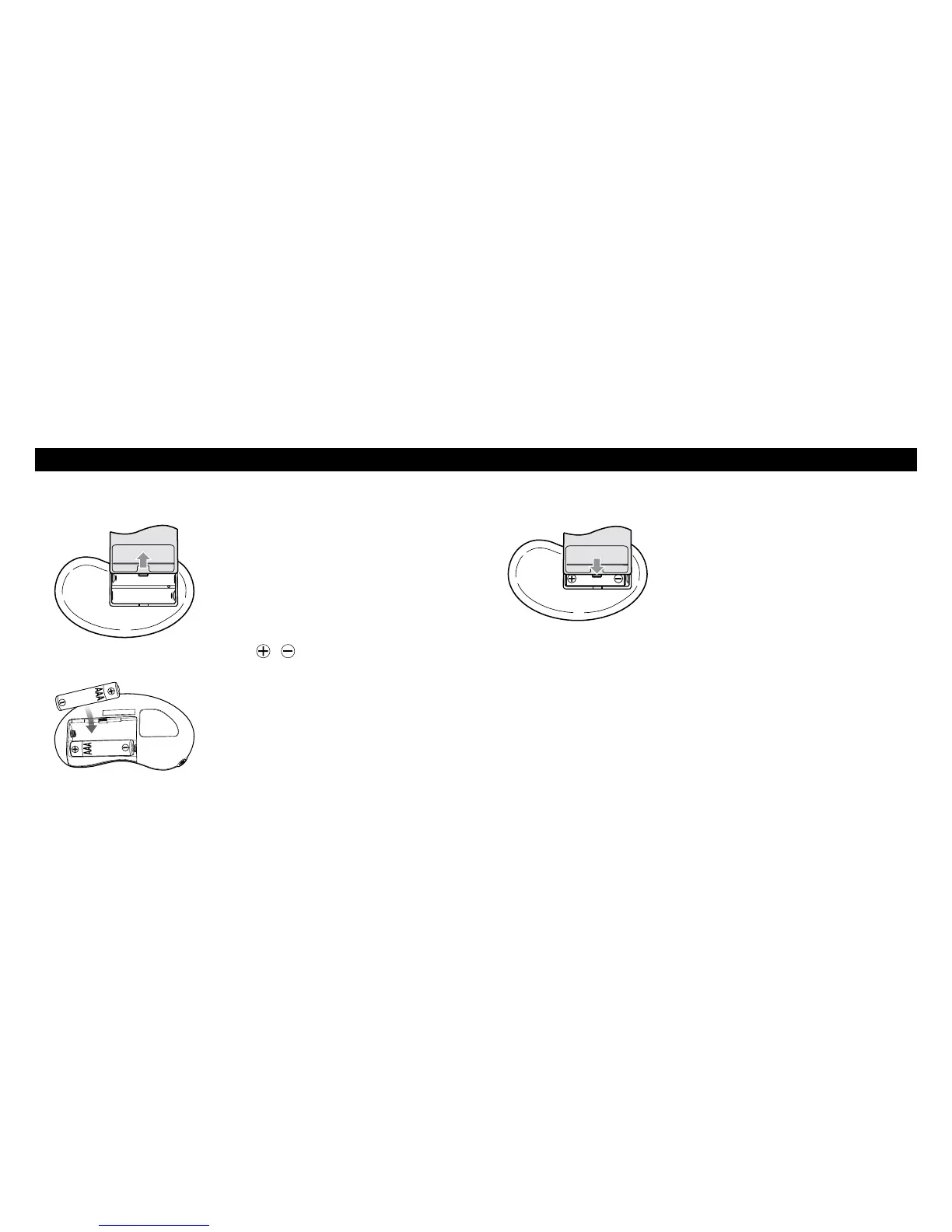 2 Insert batteries. Make sure the signs correspond when