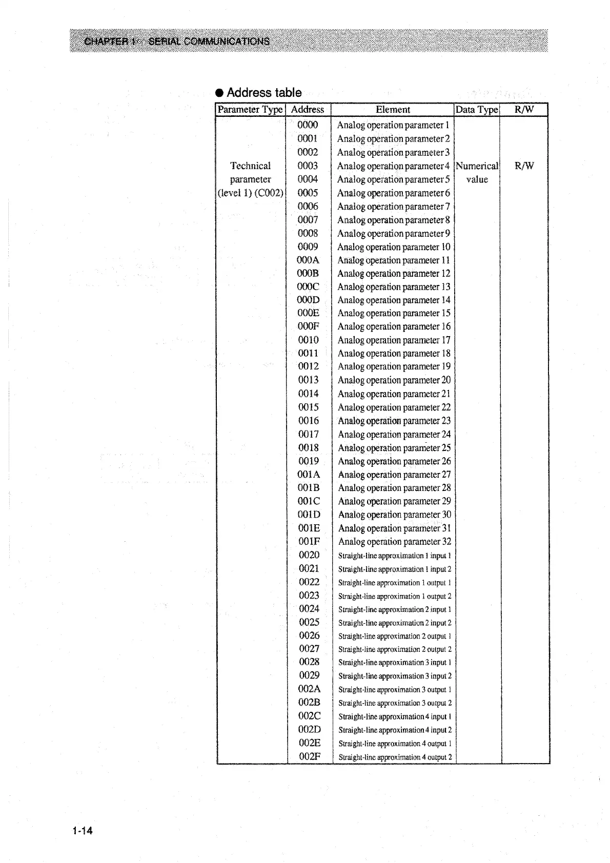 Technical◎◎◎3Analogoper頭onparameter4Num斑calR/W