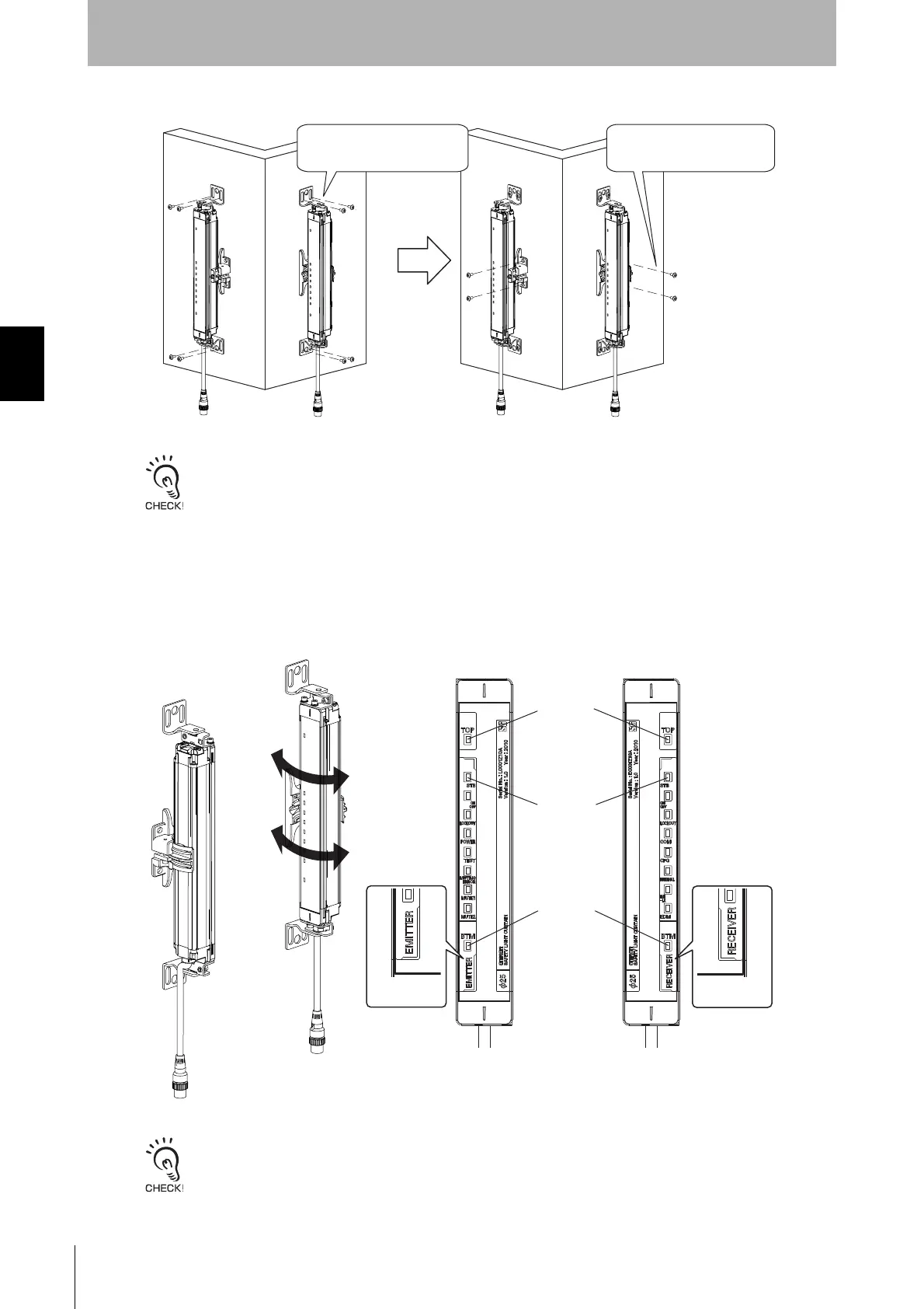 the emitter/receiver are parallel, and if the mounting height of the emitter/receiver is appropriate. Using optional