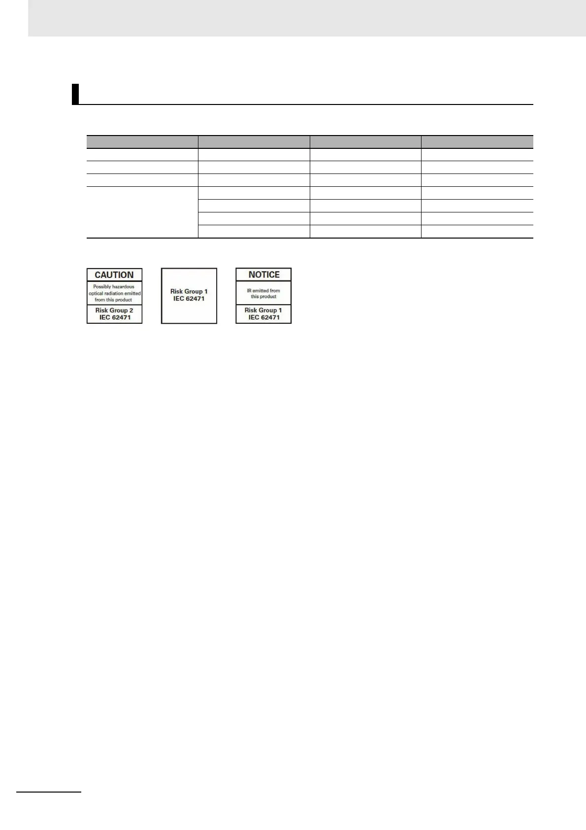 This product is classified into the following risk groups by IEC62471.