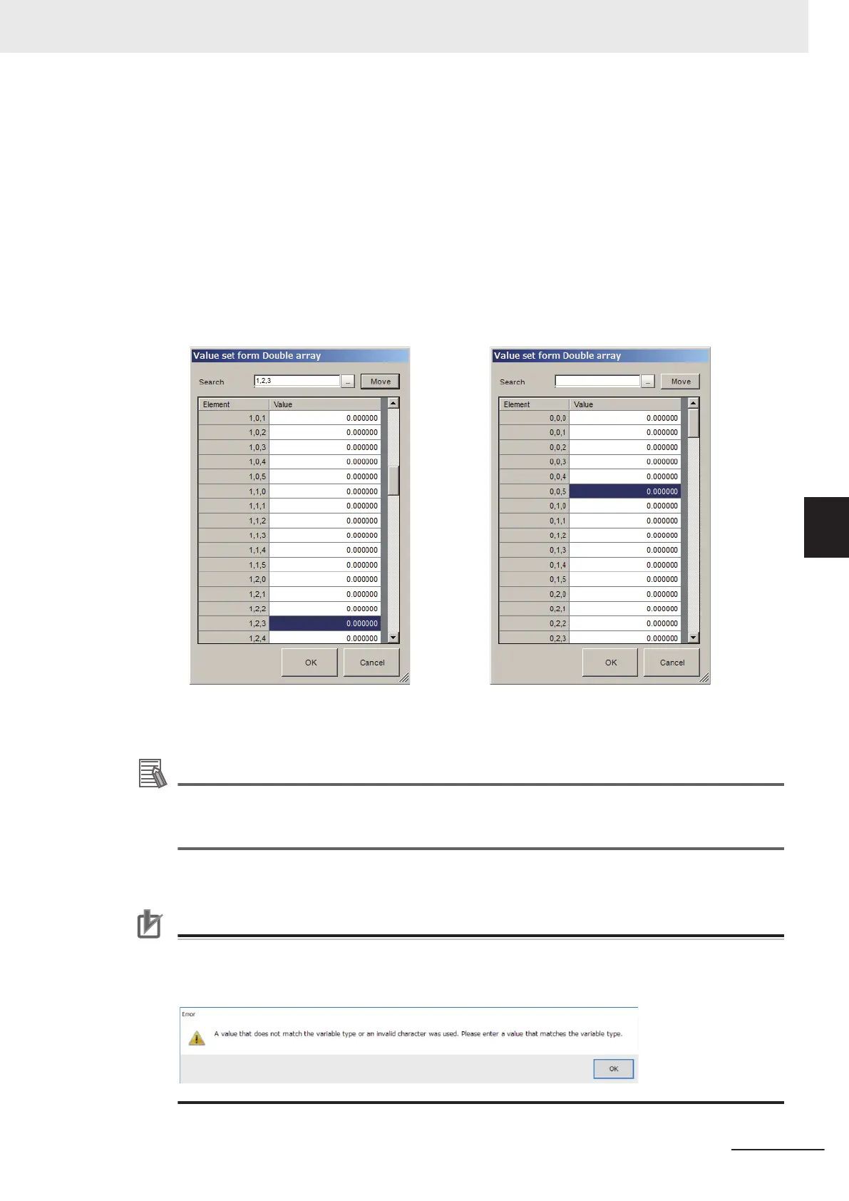 When a value that is different from the array variable type is input and then OK or Cancel is