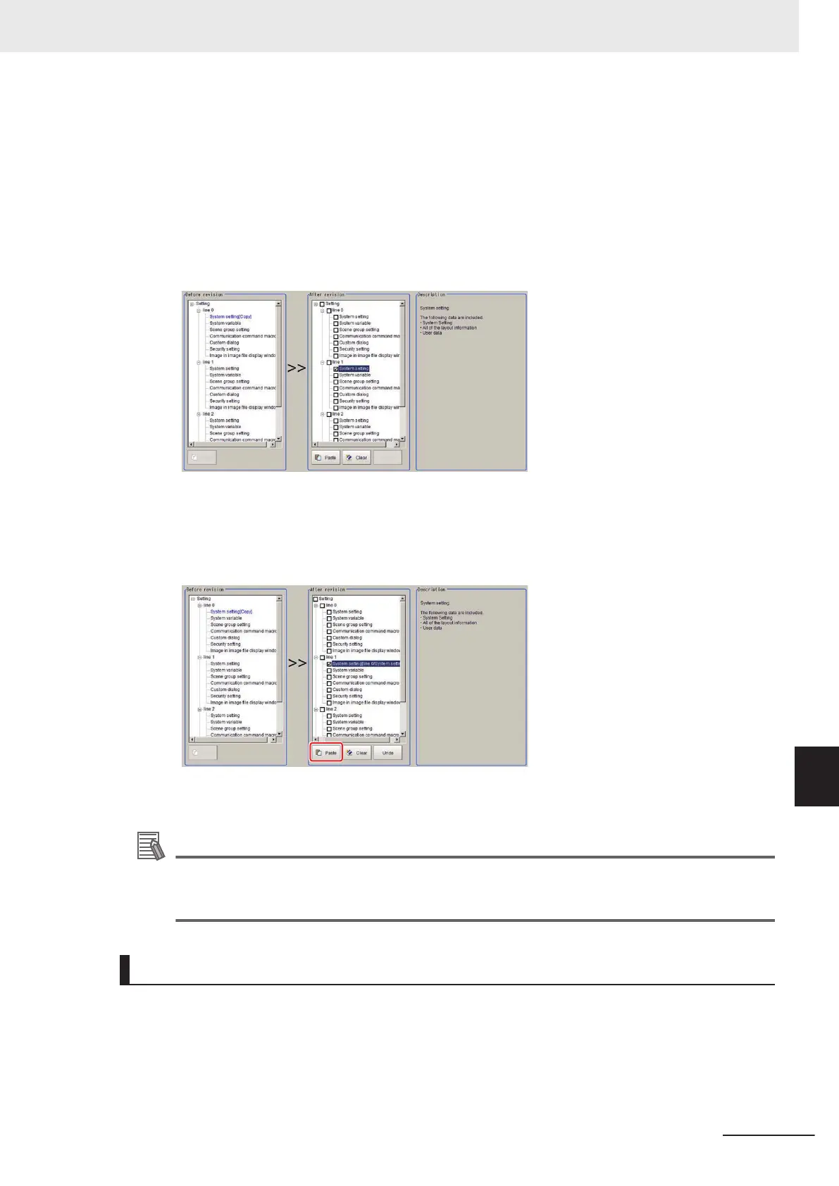 The check boxes for the selected setting data in the After revision area will be cleared.