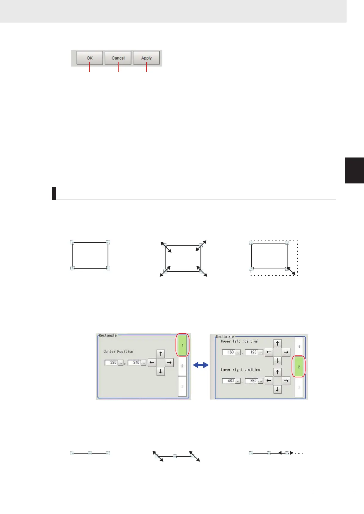 • Image selection status • Dimension Adjustment • Example: When changing the