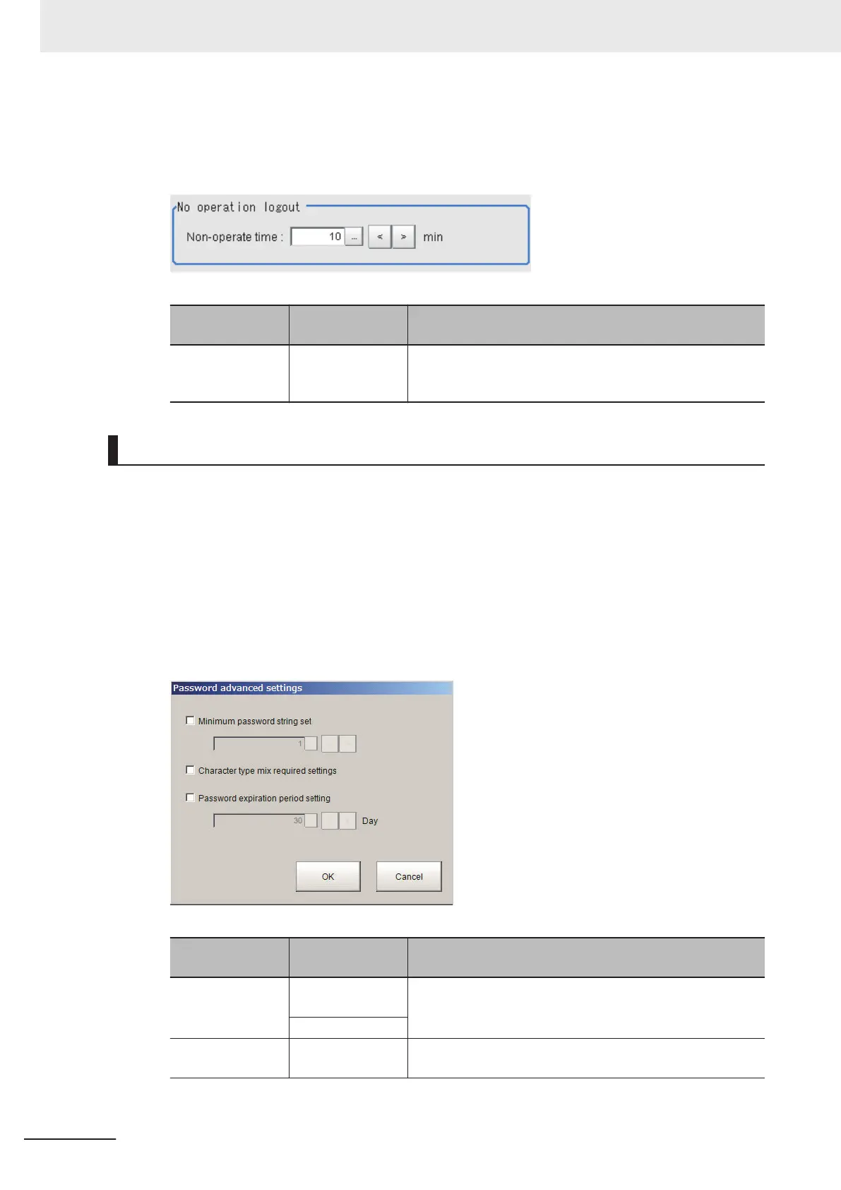 Non-operate time 1 to 999 [10] Set the length of time before an account is automatically log-