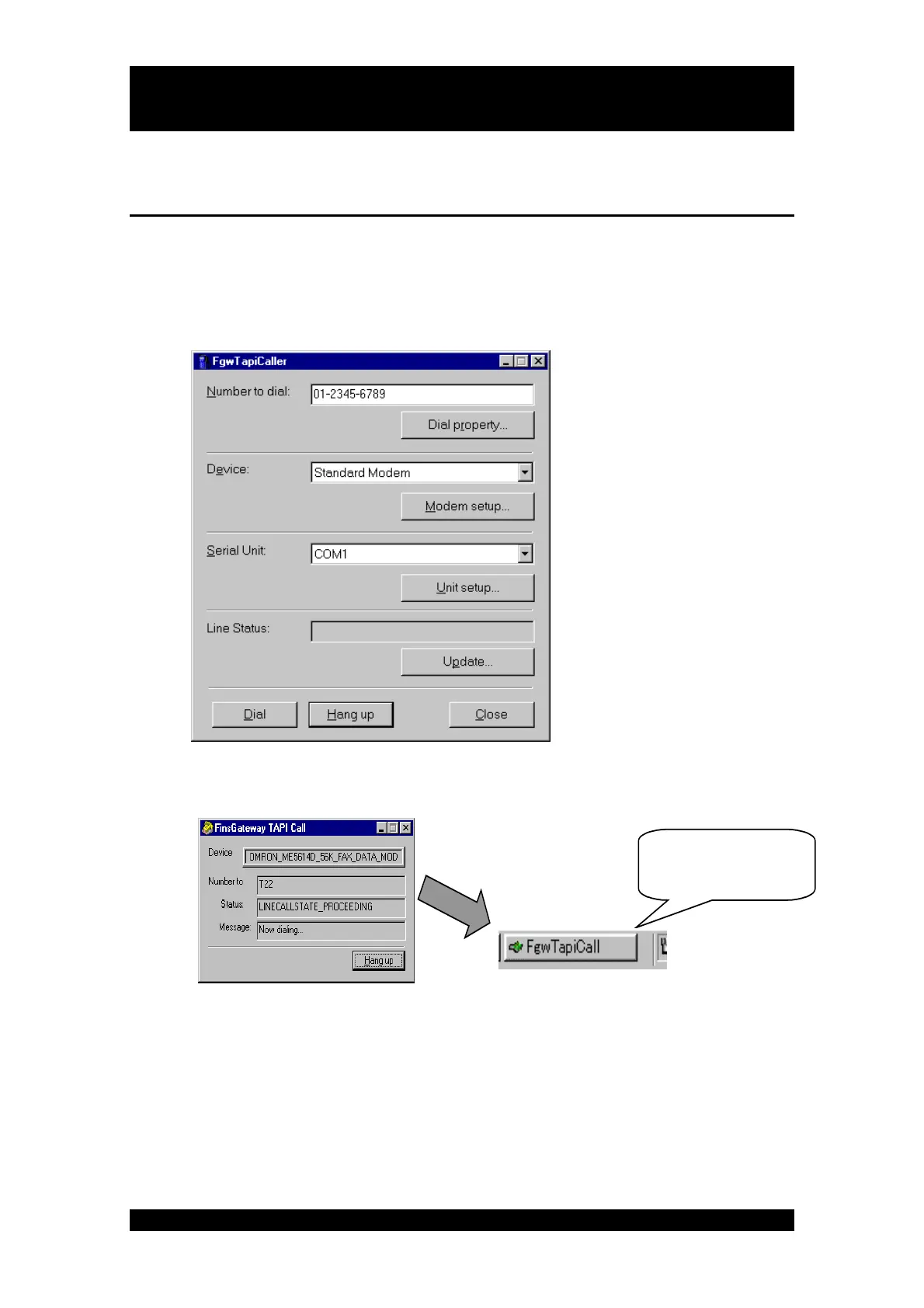 The line status dialog appears when dialing. After dialing is completed successfully, the dialog