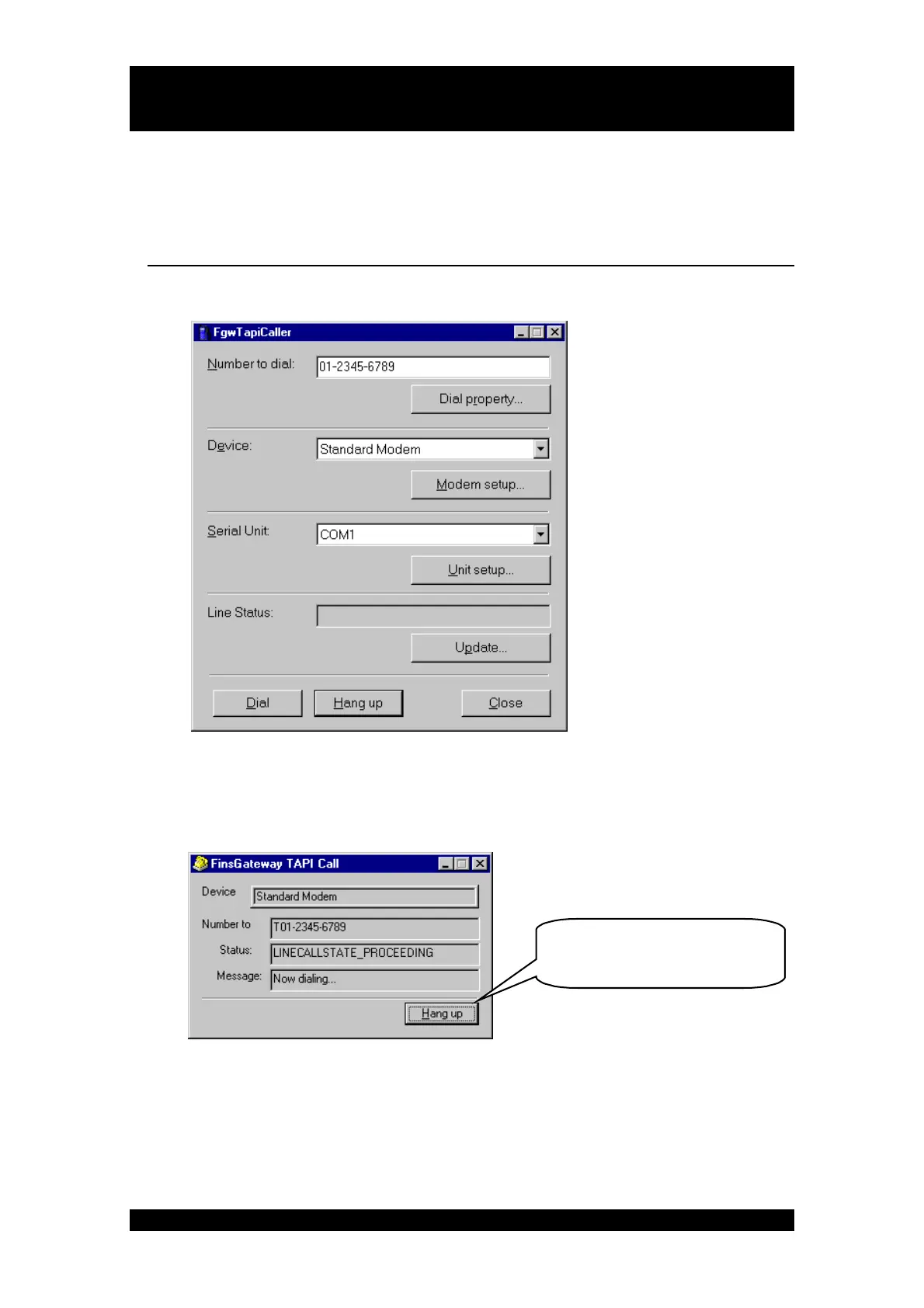 1. Click the [Hang up] button in the FgwTapiCaller.