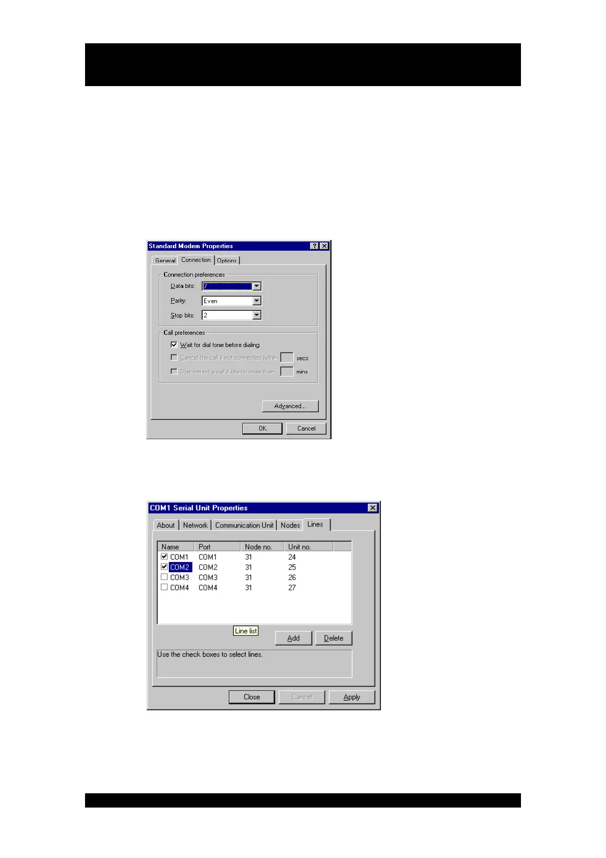5. Click the Unit setup button in the telephone number setup dialog to start the modem settings