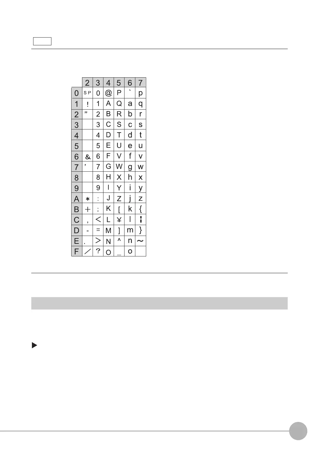 The following table shows the ASCII codes that can be used for manual registration of master data and also
