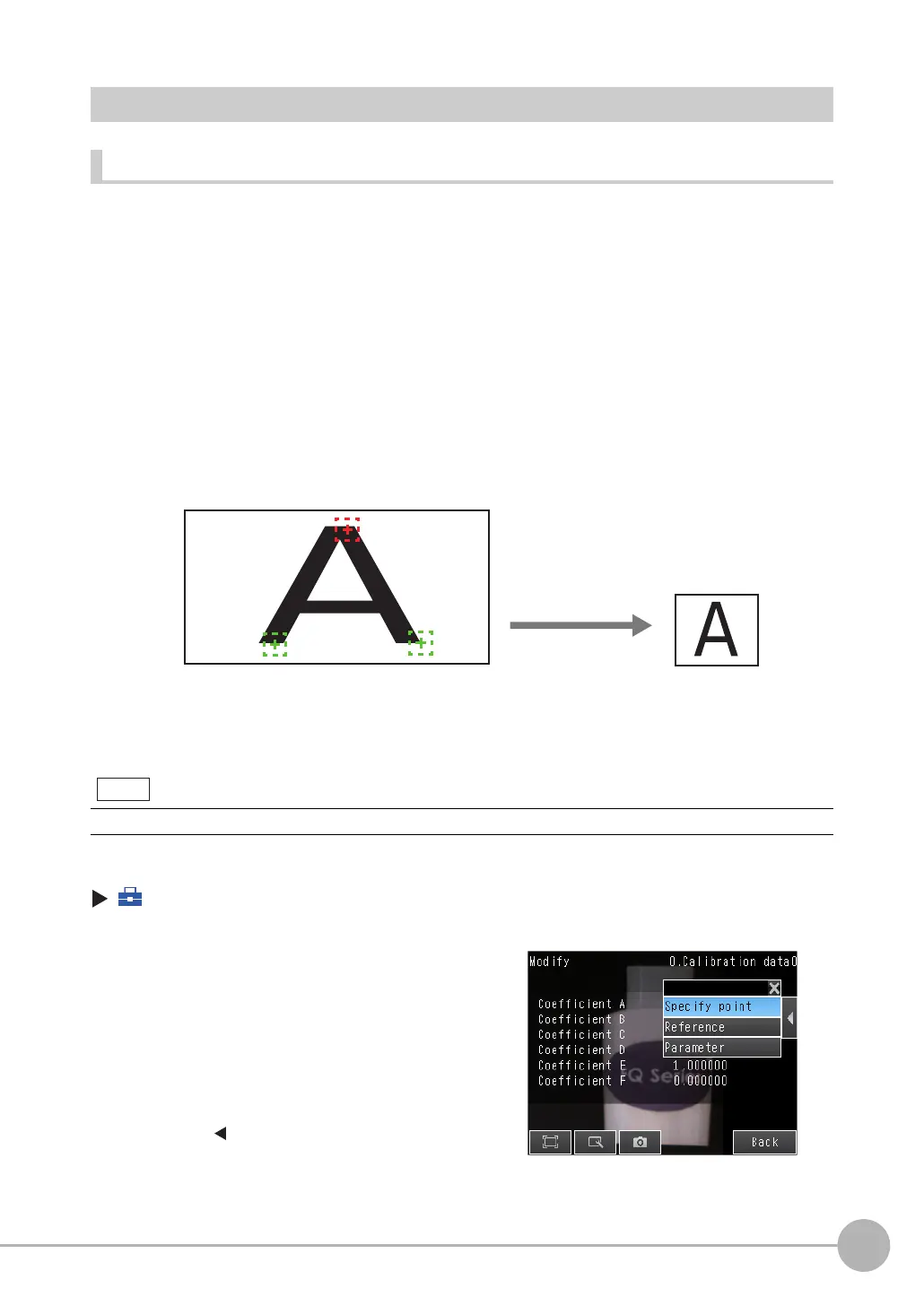 When you enter the actual coordinates of the specified positions, the calibration parameters are automatically