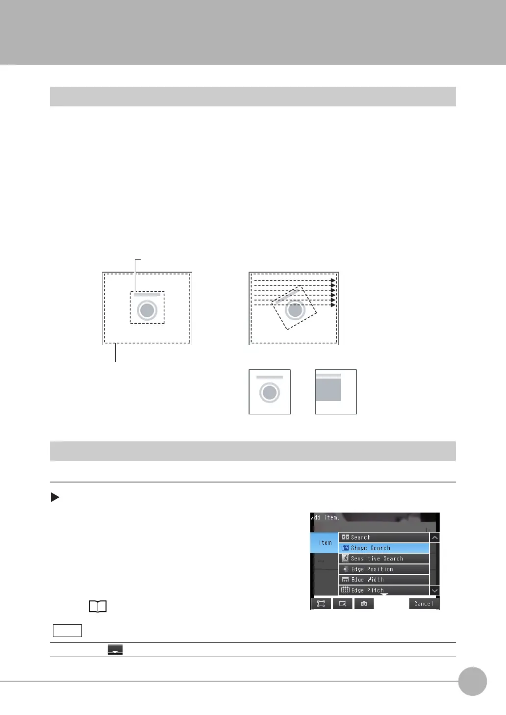 object. For the normal Search inspection item, a model that concentrates on the color and brightness of the