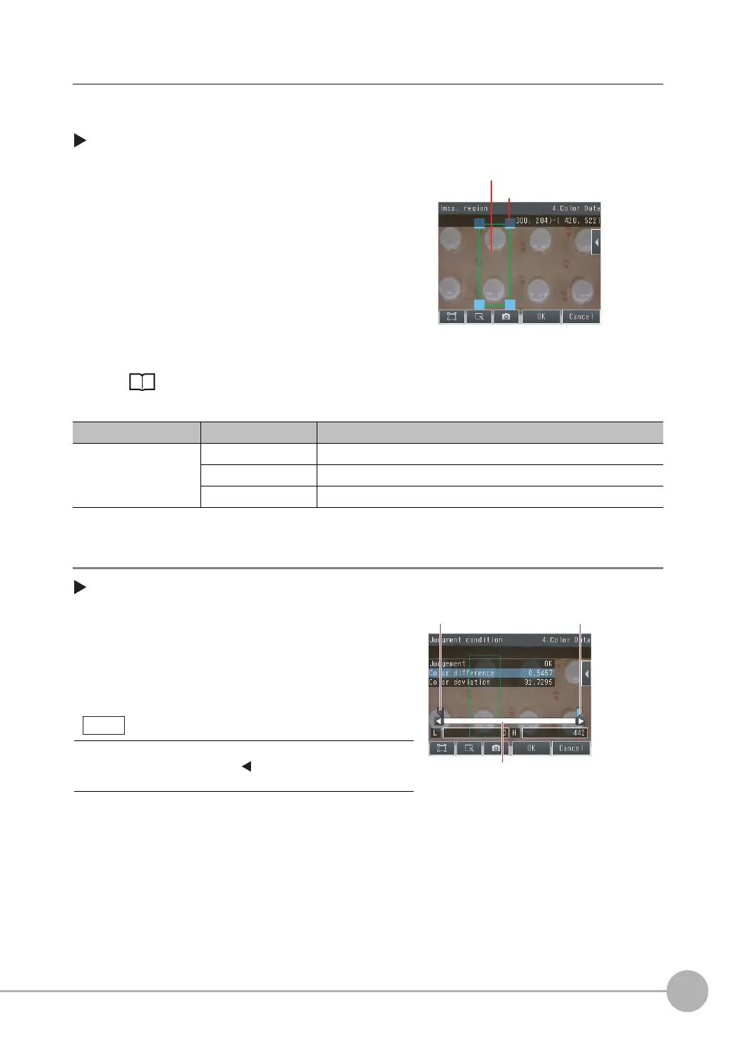 Teaching means to store the region and the average color in the region as reference data for the measurement.