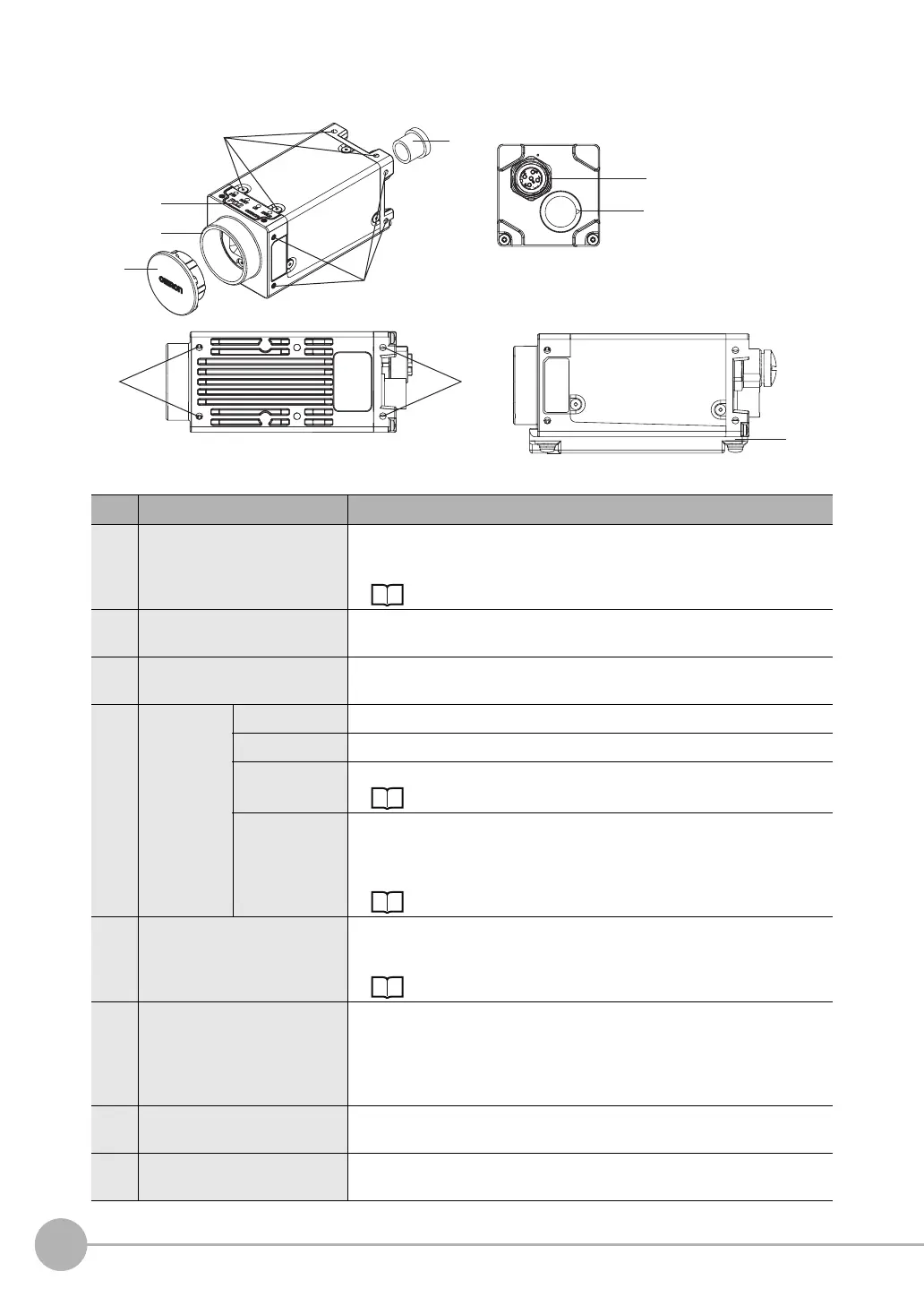 (5) Mounting holes These mounting holes for M3 screws are used to mount the Camera and to