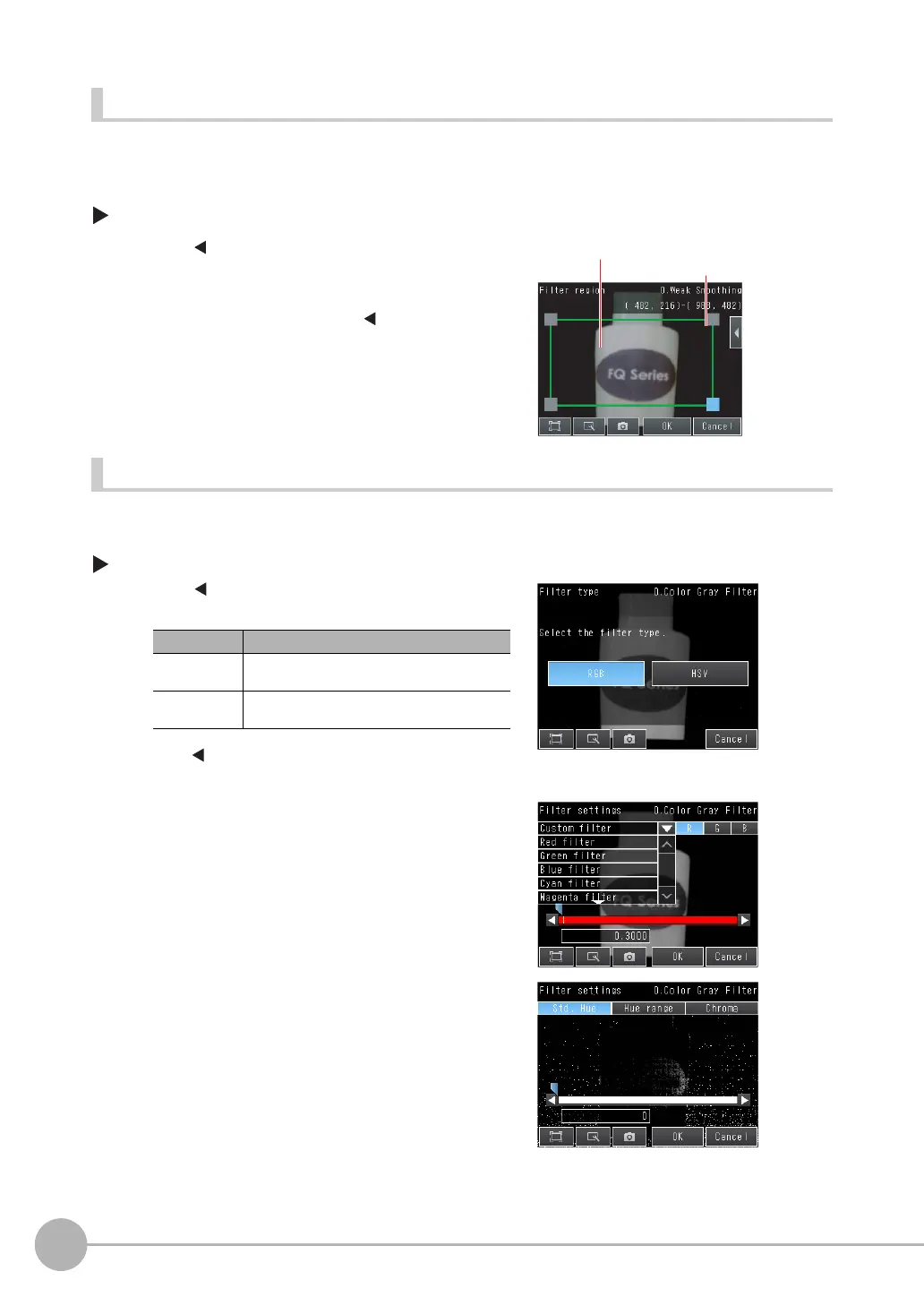 2 Set the filter type to either [RGB] or [HSV].