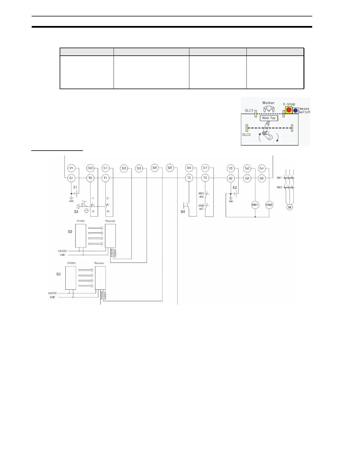 The output also goes OFF when emergency stop pushbutton S1 is pressed.