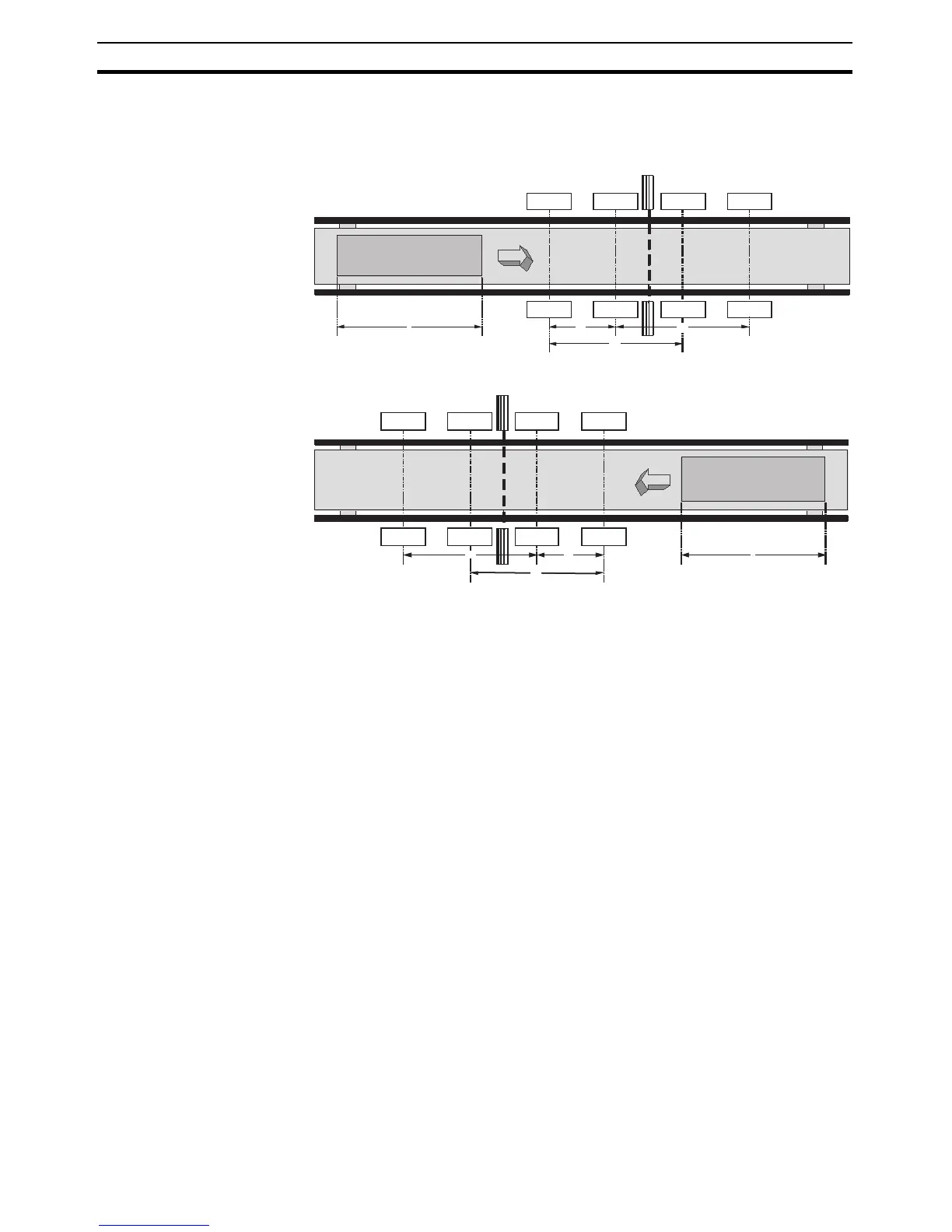 4. As the workpiece continues advancing, the workpiece is no longer detect-
