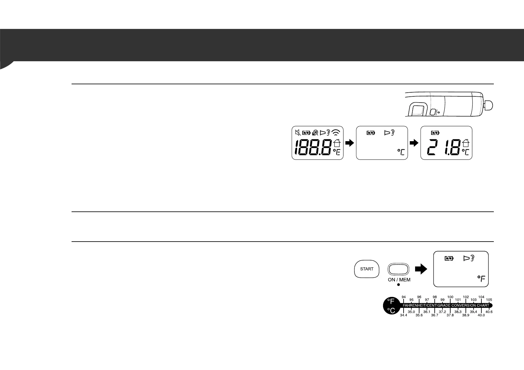 • When the unit is switched between °C and °F, all the readings stored in the