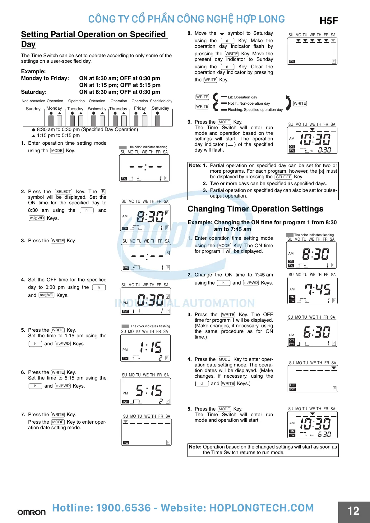 Monday to Friday: ON at 8:30 am; OFF at 0:30 pm