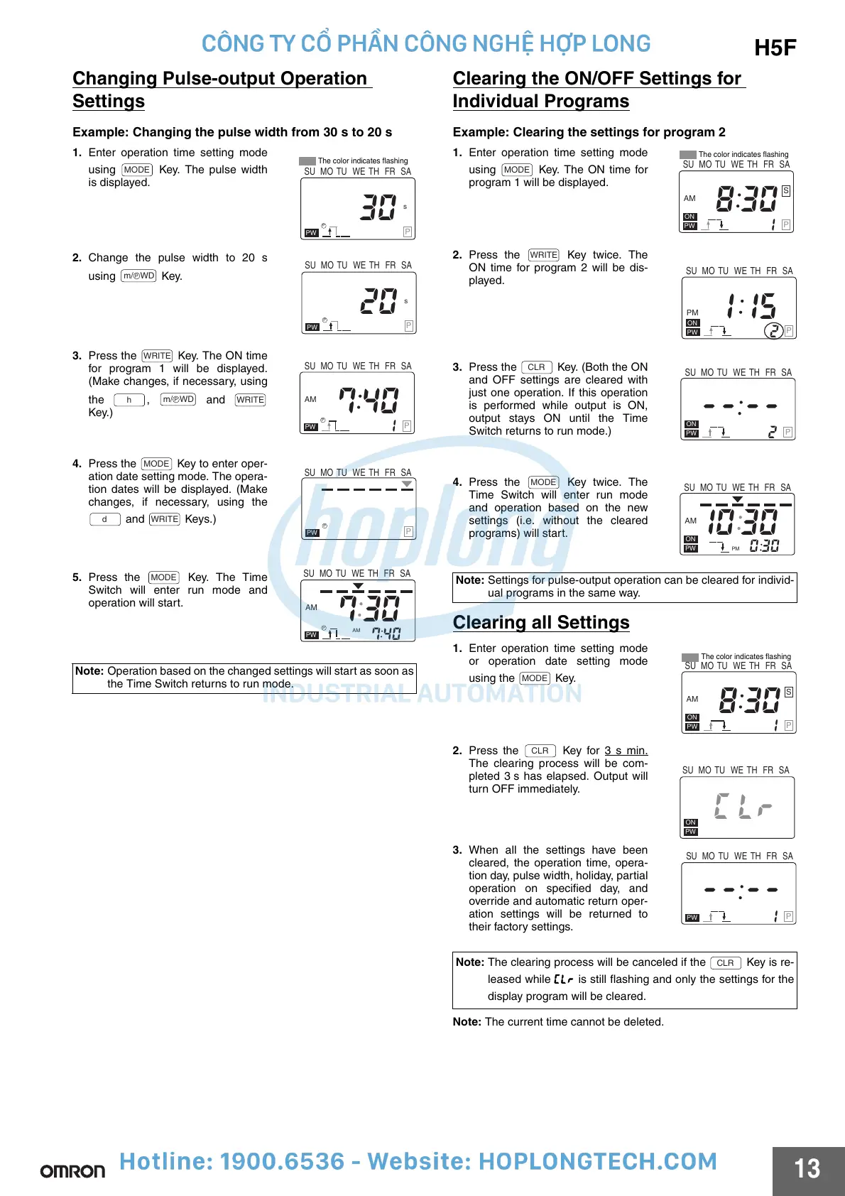1. Enter operation time setting mode