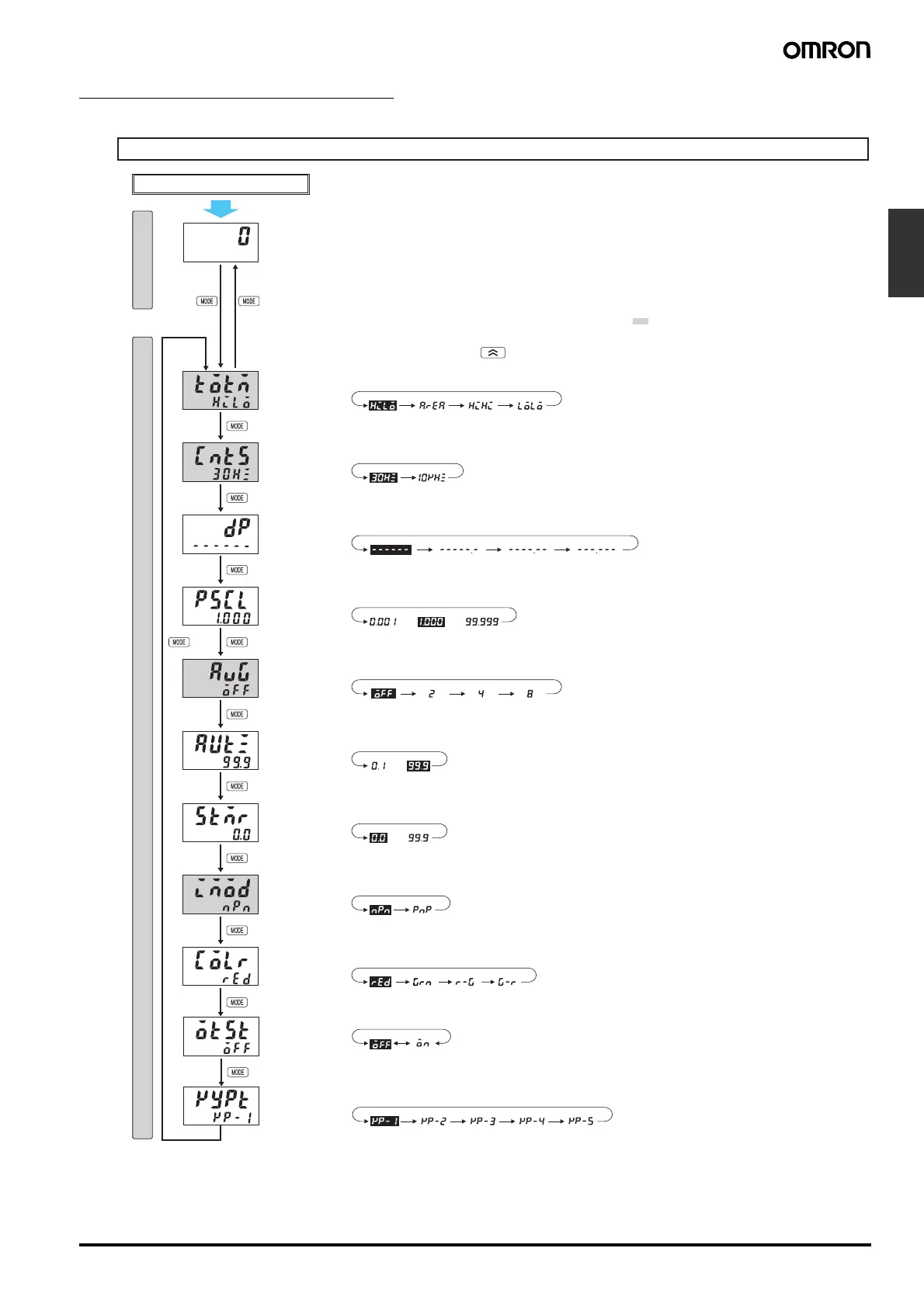 If pin 1 of the DIP switch is set to ON, the setting items indicated by will not be displayed.