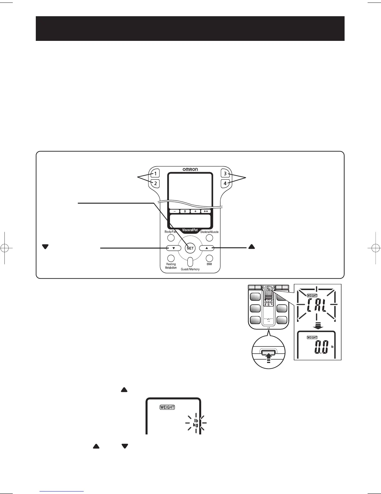ess and hold the UP button until “lb” and “kg” blink on the display.